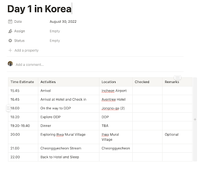 Selesai dengan akomodasi, saya lanjut ke itinerary. Sejujurnya itinerary ini bukanlah sesuatu yang bersifat saklek bagi saya tapi berlaku sebagai guidance saja. Karena saya adalah tipe bocah petualang yang memang lebih suka terbawa kemana arah angin berhembus. Cuma agar perjalanan saya ke Korea Selatan nantinya lebih mulus dan lancar, maka dari itu saya siapkan itinerary untuk 5 hari di Korea. Itinerary tersebut adalah sebagai berikut: